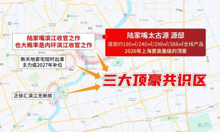 要知道,上海目前有三大顶豪共识区:新天地、徐汇滨江、陆家嘴。前两者今年预计无新房入市,也就是说,陆家嘴太古源 源邸成为2026年上海量级更高、更具稀缺性的顶豪选择,是今年上海顶豪绝对“主角”。