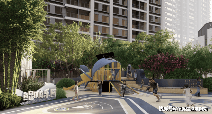 以“鲲鹏乐园”主题儿童乐园、鲲鹏书院、老人颐乐空间、多元艺术花园、约760m“汽车文化”主题跑道、森林漫步道等共享场域为居者构筑一个有温度的社区。
