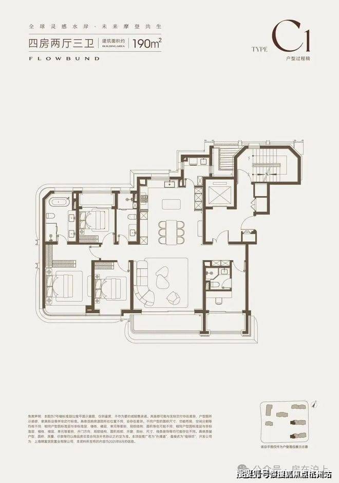 190㎡四房 :L形布局,江景视野好但动线稍紧凑。