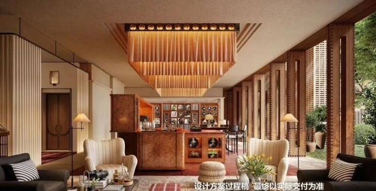 会所由全球顶奢酒店设计领域的 标杆——CCD香港郑中设计事务所执笔。 目前看到的效果图,体现出一股醇正的老钱世家风,设计品位远超市场同类豪宅。