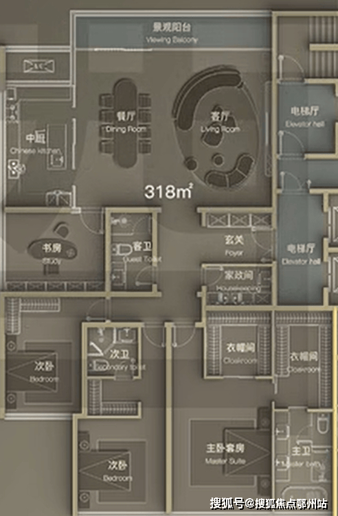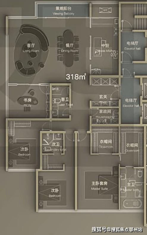 高区 建面约318㎡四室两厅三卫