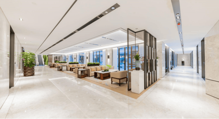 若经人行入户大堂,映入眼帘的即是宝华经典的“太阳圈”标志,连天花板都加入了星空灯光的点缀,整个空间明亮、大气。