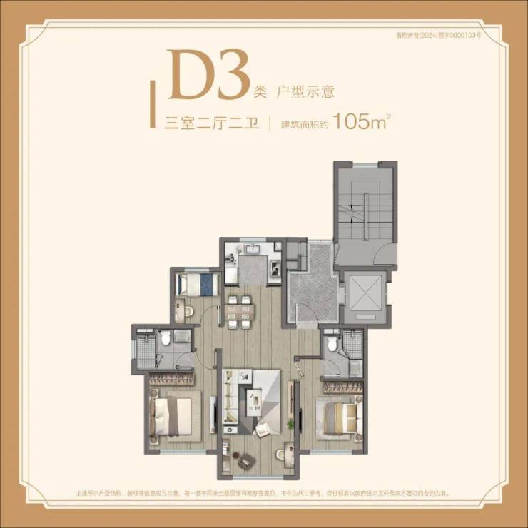主力在售建面约105㎡3房,中外环鲜有的900-1000万级高品质户型!