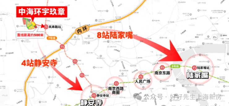 项目直线距离20号线广泉路站(在建)约400米,7号线岚皋路站约500米,4站静安寺;在此换乘2号线,更能一路畅达南京西路、人民广场、南京东路、陆家嘴(全程仅8站)等上海顶级板块。