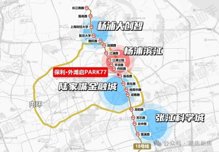 纵向18号线:贯通复旦/同济/财大杨浦大创智国际生态联盟、长阳创谷(小红书、得物总部)、杨浦滨江科创带(美团、B站千亿集群),6站陆家嘴缔造“智识-产业-资本”全链生态。