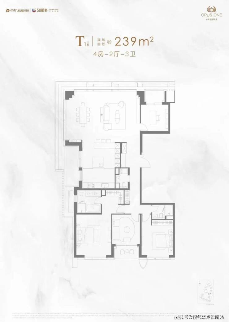 石英石台面、嘉格纳(或同档次)灶具、吸油烟机、洗碗机、冰箱、蒸汽烤箱的厨房六件套;239-251㎡户型并配有酒柜。