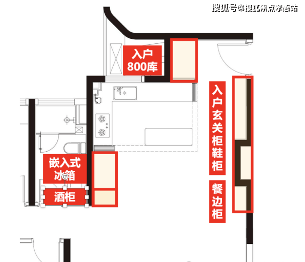 1.投影面积超同价位项目100-200%的收纳柜体空间