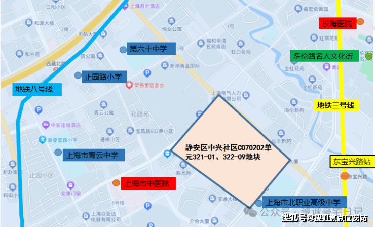 静安区中兴社区C070202单元322-09地块项目,东至东宝兴路,南至规划322-08地块、宝通公寓、长征大厦,西至宝通路,北至天通庵路,土地用途为普通商品房及办公楼,容积率3.0,在2022年9月土拍被华发竟得,房地联动价119000元/㎡,后转让给上海静投开发打造.