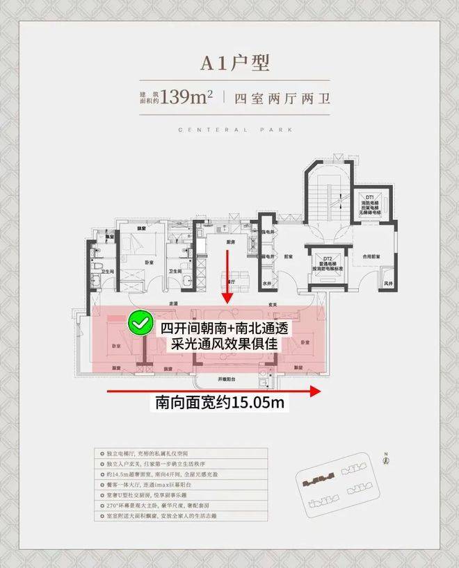 亮点一:经典四开间朝南+大横厅设计,超绝采光户型!