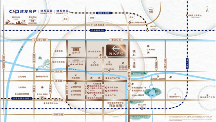交通方面,建发·朗玥紧邻金山铁路金山卫站,约30分钟直达上海南站,换乘1、3号线可快速抵达市区核心区域。自驾出行也十分便捷,紧邻G15沈海高速出入口,30分钟内可达金山滨海核心区。