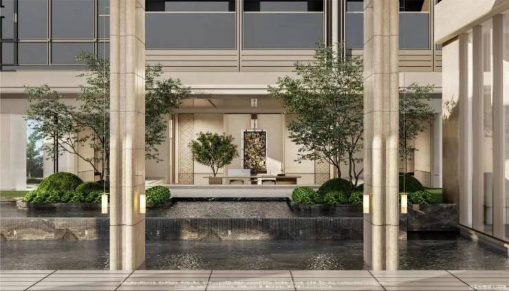 双轴线的设计,充分拓宽了视野面与观赏点位,环形回廊、精神游廊与下沉庭院通过立体景观平台相融,又创造出隔岸听泉的诗意场景。在会所、在架空层泛会所、在归家路上,每个重要生活触点,业主都能拥享独特景观和欣赏视野。