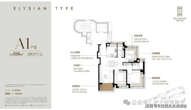 约106m²三房两厅两卫(A1户型)