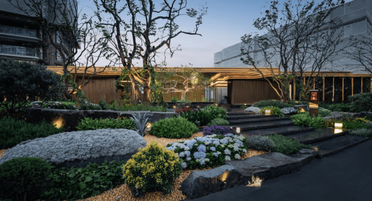 浓荫如盖,将喧嚣隔绝于外,归家第一步,便踏入静谧隐逸的东方意境。