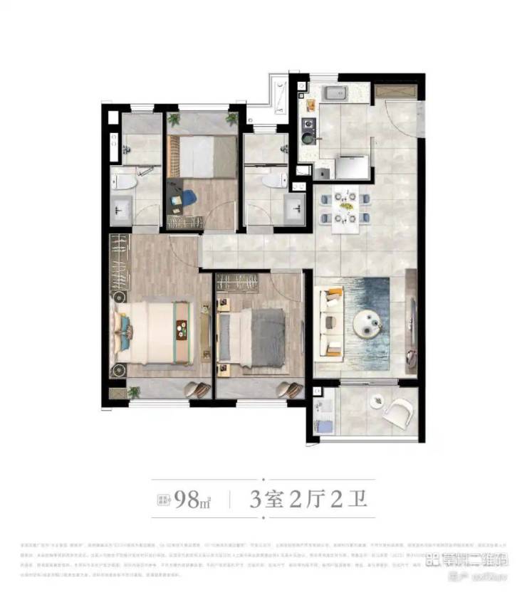 [ A户型 ] 建筑面积约98㎡ | 3房2厅2卫