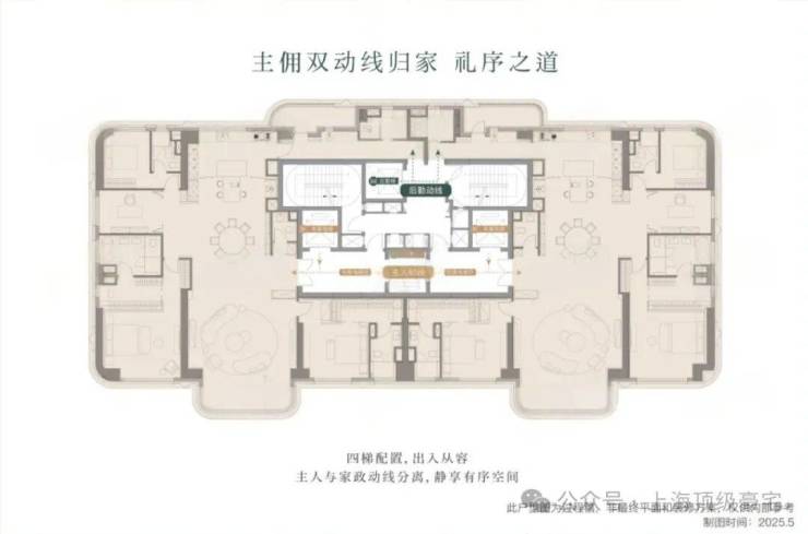 项目其包含4幢150米超高层地标大宅,首期主力户型为270㎡-640㎡城市封面级天际大平层,已售罄。