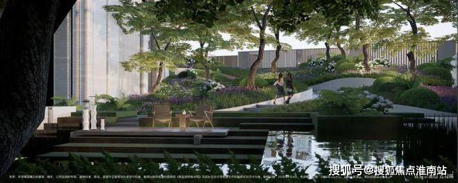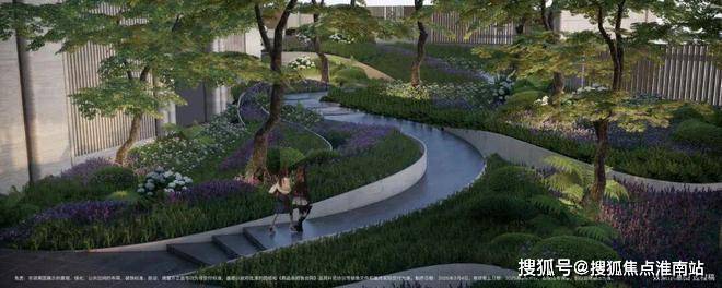 小区做了抬高处理,整体抬高,最高处超过7米,整个小区形成了错落的格局,在小区内部做台地景观。所谓台地,便是将小区内地面整体抬高,与市政道路形成一定的高度落差,这样建造的社区气势磅礴,居高临下。通过景观设计,将小区景打造成了立体台地花园,设置缓坡、下沉式花园、台阶等,让整体景观表现出立体层次感,错落有致。