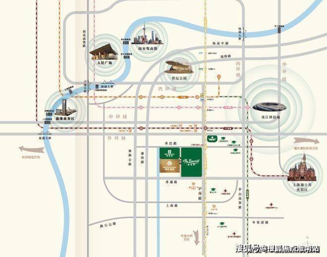 项目距离外环约1.5km,东侧紧邻沪南公路和地铁18号线,首先康桥东接迪士尼国际旅游度假区,北接联洋世纪公园,距离陆家嘴约12公里。