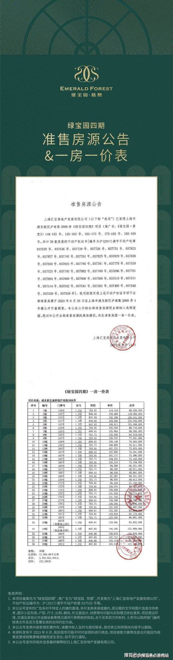 【绿宝园翡梵】:建面约684/748/859平别墅,共38套,少量房源在售,可直接下定,总价约7000万起!