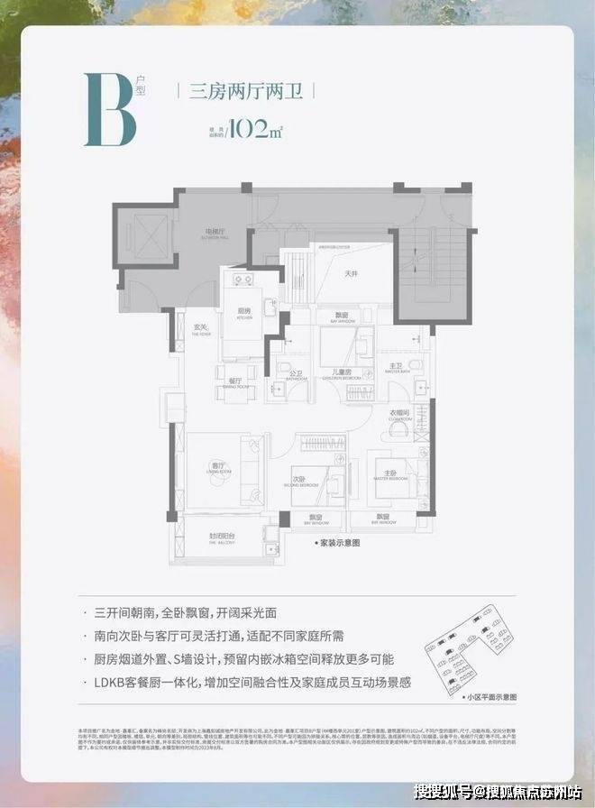 建面约102平3房2厅2卫(边户)金地嘉峯汇售楼处电话☎:400-8787-740【已认证】