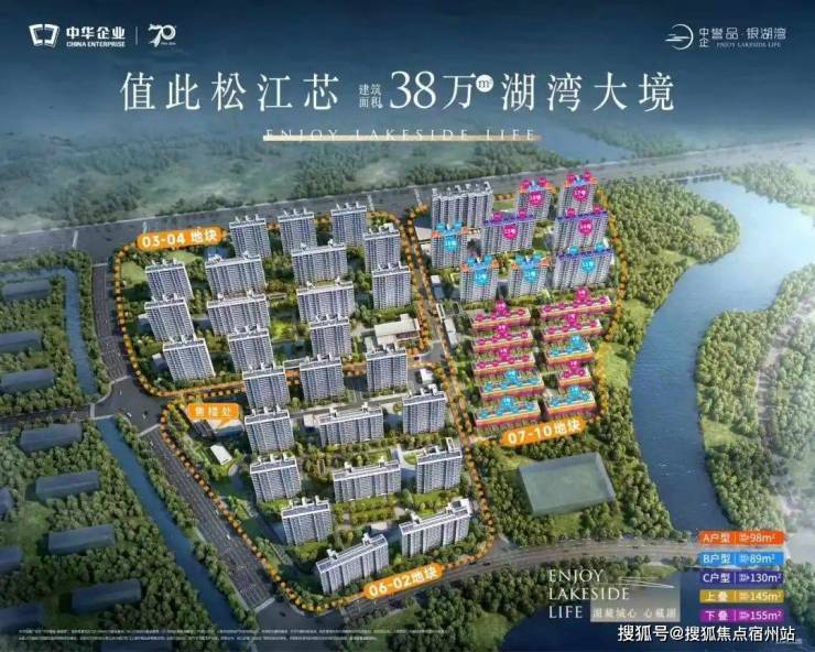 松江广富林印象城旁38万方低密湖湾大境「中企誉品银湖湾」建面约89/98/130㎡3/4房热销中总价约440-820万建面约145/155㎡叠墅热销中总价约900-1150万