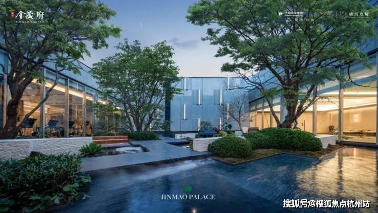 而人行线路则由星级酒店式的入户大堂进入,接着便是6S会所环绕的下沉式水景庭院,约7米高磅礴大气的水景墙配合乌桕林和原石、浮桥交错的地面水景,若是傍晚归家,还能欣赏倒映在水中的点点星光,可谓满满的奢雅意境和尊贵仪式感!