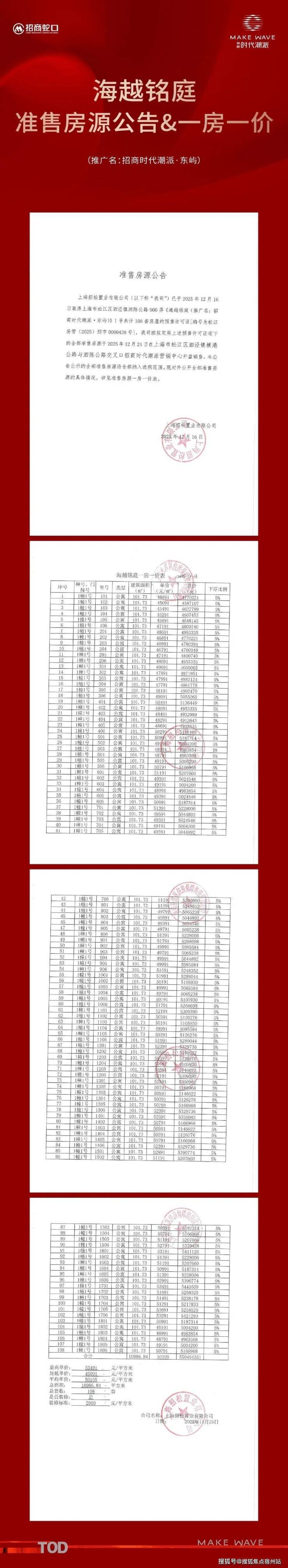 最新消息,一房一价表发布!松江泗泾9号线TOD神盘「招商时代潮派」二期三批次明天认购!推出建面约102㎡三房,均价5.01万/㎡!