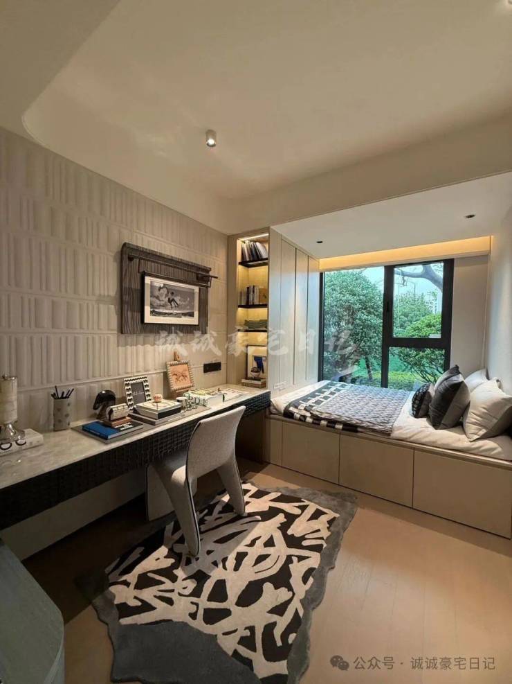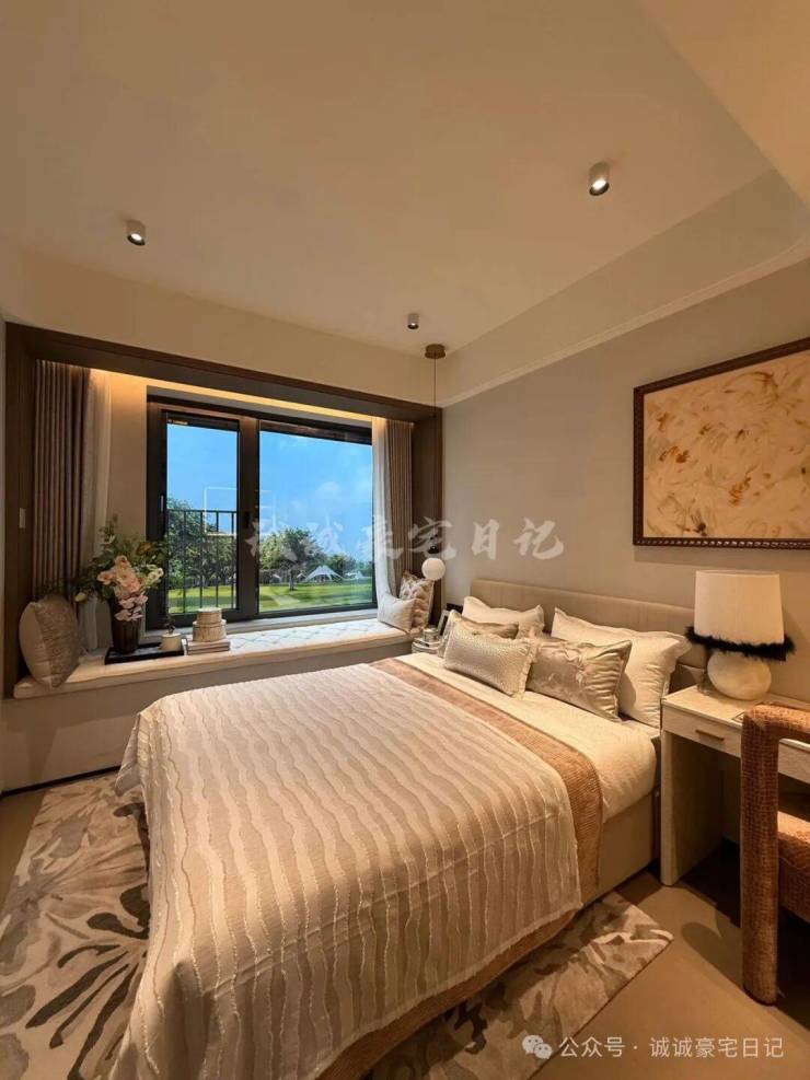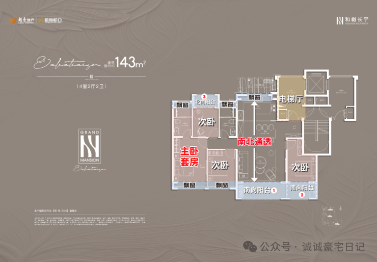 项目建面约143㎡户型的设计无疑是市场一流水准,一梯一户保证私密性和尊崇感;四开间朝南+大宽厅,采光效果爆棚;主卧贯穿南北套房设计,南北都有飘窗,舒适度可圈可点。