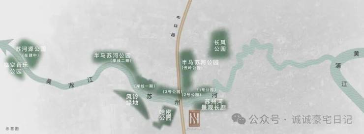 项目周边的医疗、教育、艺术资源同样是顶配。而且因为近邻苏州河,项目在生态层面上也有独树一帜的优势。