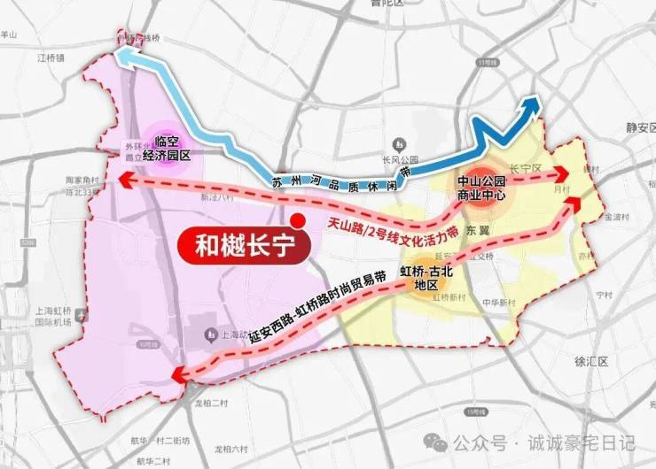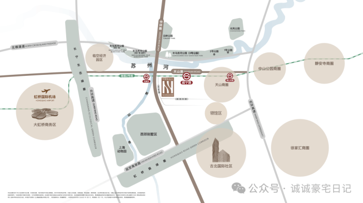 其他区域肯定会,但和樾长宁没有对手,理由很简单:项目是长宁内中环十年难遇的新房供应,也是天山路最后一块宅地。天山路有2号线串联,又邻近苏州河,环境非常宜居,沿线早就“塞满”了高端住宅小区,上一个入市的新房还要追溯到西郊紫薇花园。