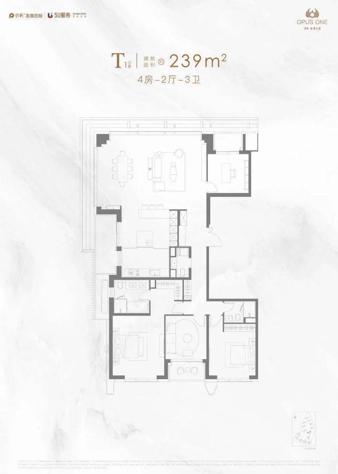 而建面约174㎡在做到极致观景面的同时,主卧面宽高达约5.7米,媲美别墅居住体验。