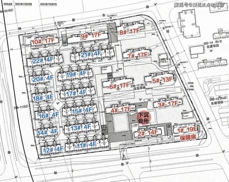 根据项目规划设计方案:项目拟建9栋13-17层小高层、12栋叠墅以及1栋保障房。小区配备下沉式会所,小高层大部分楼栋为一层架空,局部有连廊。