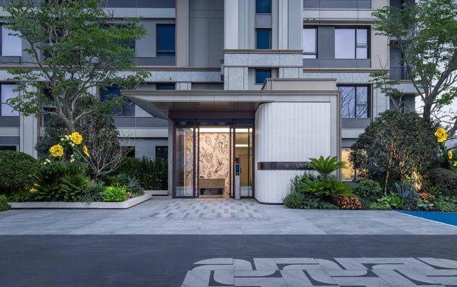 精装单元入户,大气的入户大门、定制地毯式铺装、两侧点缀景树,是归家仪式感的体现,更是花园归家的品质体验。