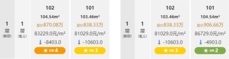 对比张家浜、新杨思、北蔡通面积段新房,起始总价超800万甚至接近900万,平均倒挂近16%!!