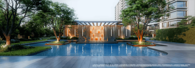 实景呈现的岛屿水院,作为保利天奕五座全球大师花园之一,在银海枣树阵、下沉式庭院、镜面池畔卡座的呼应中,成为未来居者沉浸自然的惬意之地。温柔闲适的落日廊吧,犹如身处海岛之畔,感受蓝调时刻的优雅情调。