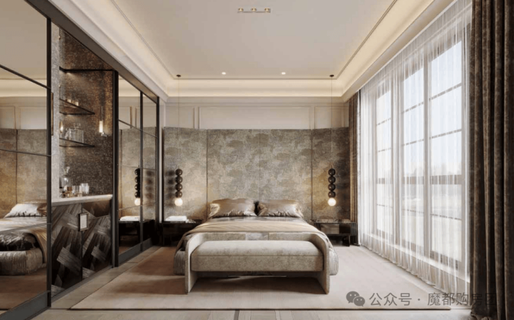衣帽间、梳妆台、2米大床甚至是浴缸,都可以轻松容纳,再加上超大落地窗的设计,居住舒适度直接拉满!