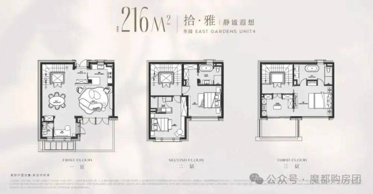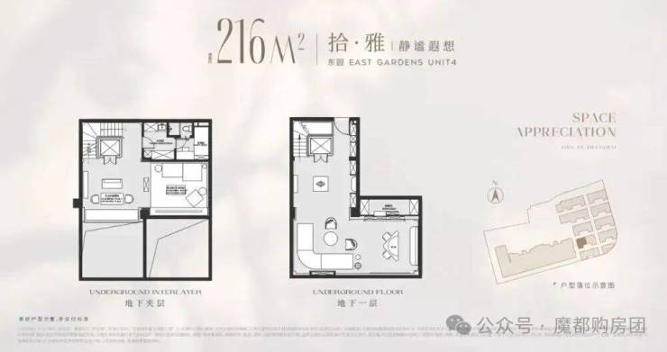 以建面216平户型为例,地面总高3层,地下一层5.5米带夹层,地下室面积就达到120m²,另外有露台、花园等,项目平均附赠也达到了约60%!