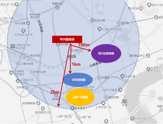 【中兴路地块】作为内环内优质资产距离市中心人民广场距离仅约2公里,苏河湾商圈直线距离约900米,距离北外滩直线距离约700米,距离大悦城商圈约1公里,也就是说,从这里到人民广场,从这里到苏河湾,从这里到陆家嘴,以及市中心最便捷、最繁华、最热闹的配套,一定是触手可达的。