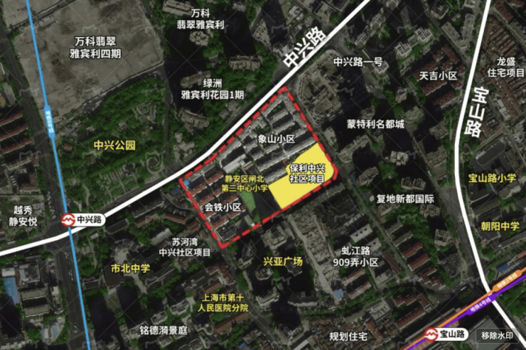 2023年10月11日,保利发展以总价154612万元成功竞得静安区中兴社区C070202单元280-06地块,溢价率为9.7%,楼板价为81375元/平方米,高层房地联动价12.5万/m²,风貌别墅房地联动价18万/m²。
