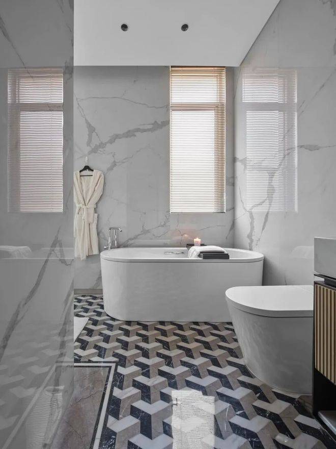 5、卫生同:石膏板吊顶,刷涂料,地面铺石材或诺贝尔品牌地砖,墙身贴石材