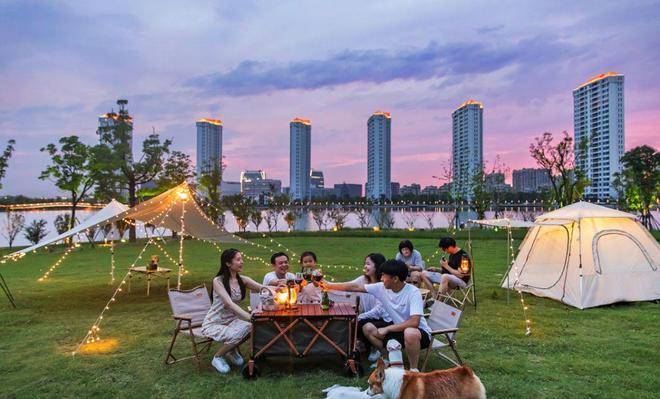 时下流行的露营、野餐也已是兰香湖生态社区的“常规节目”,周末你能看到不少年轻人在此扎帐篷,不止是业主,更多的是游客。