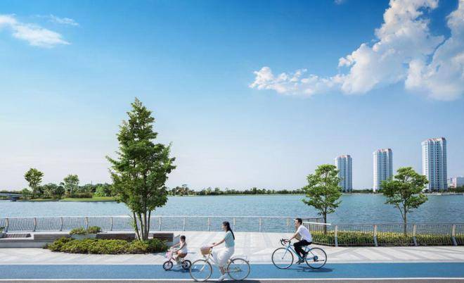 闲暇时分,下楼就能来一场环湖4km亲子骑行,一路上湖光天色尽收眼底。