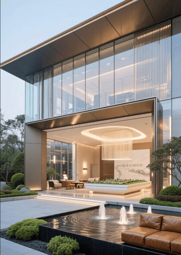 以极简线条勾勒建筑都市云盒造型和圆角建筑语言表达,结合三玻两腔双LOW-E的系统化外窗与精致的金、银、灰铝板细节,构建高级灰底色下的深浅冷暖材质对比,赋予建筑新时代美学。