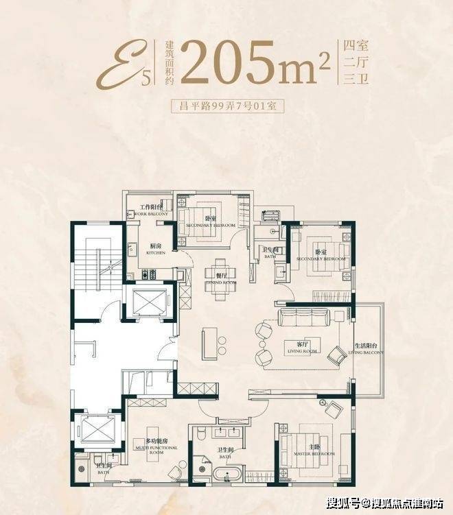 而且你仔细看,2个套房分列客厅左右,并且配置极为相似.