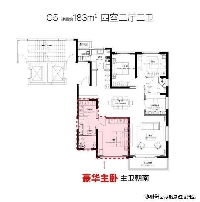 建面约183㎡4房2厅2卫户型: