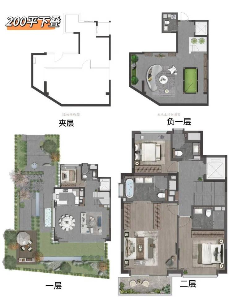 项目摒弃市场常见的6层叠墅设计,采用4层真叠墅结构,去掉了尴尬的中叠,让上下叠均享有落地庭院和地下空间,实现了“户户有天有地”的墅居体验,彻底打破对叠墅的固有认知!