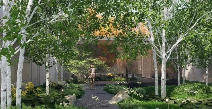 三进院:来到社区中央,18米宽的中心景观轴,搭配景观水池与疏密乔木,形成极简却又不失典雅气质的主景观花园!