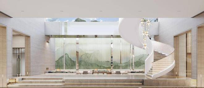 步入庭院,精致会客厅搭配匆匆绿意和层叠水院,颇具层次感的美景让归家的业主瞬间放松,卸下一天的疲惫,也深度诠释了项目归家即是度假开始的设计理念!