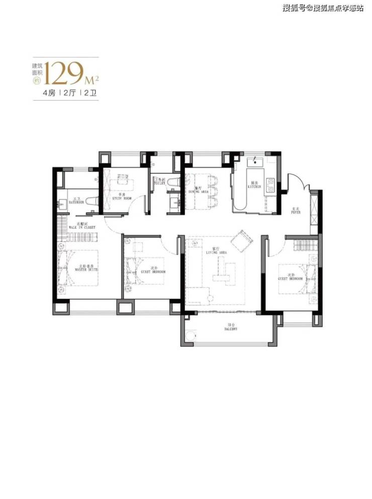 产品:103㎡、107㎡的三房两厅两卫及123㎡、129㎡的四房两厅两卫。