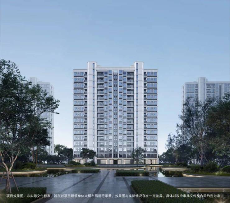 以简洁明净的几何线条,勾勒建筑轮廓,打造轻盈质感;延续赵巷江南水乡“水陆交织”空间肌理,以“一轴、一环、多园”景观格局,七大景观节点,形成丰富的空间院落,打造多层级的空间效果。