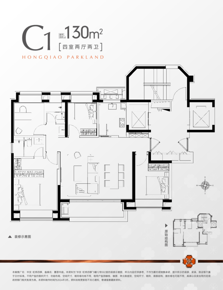 这套大户型,整个做到了南北通透、客餐厨真正的一体化。四房户型整体的舒适度和阔绰感还是显露无疑,让至少三代人都能在此住得更好,生活得更好。